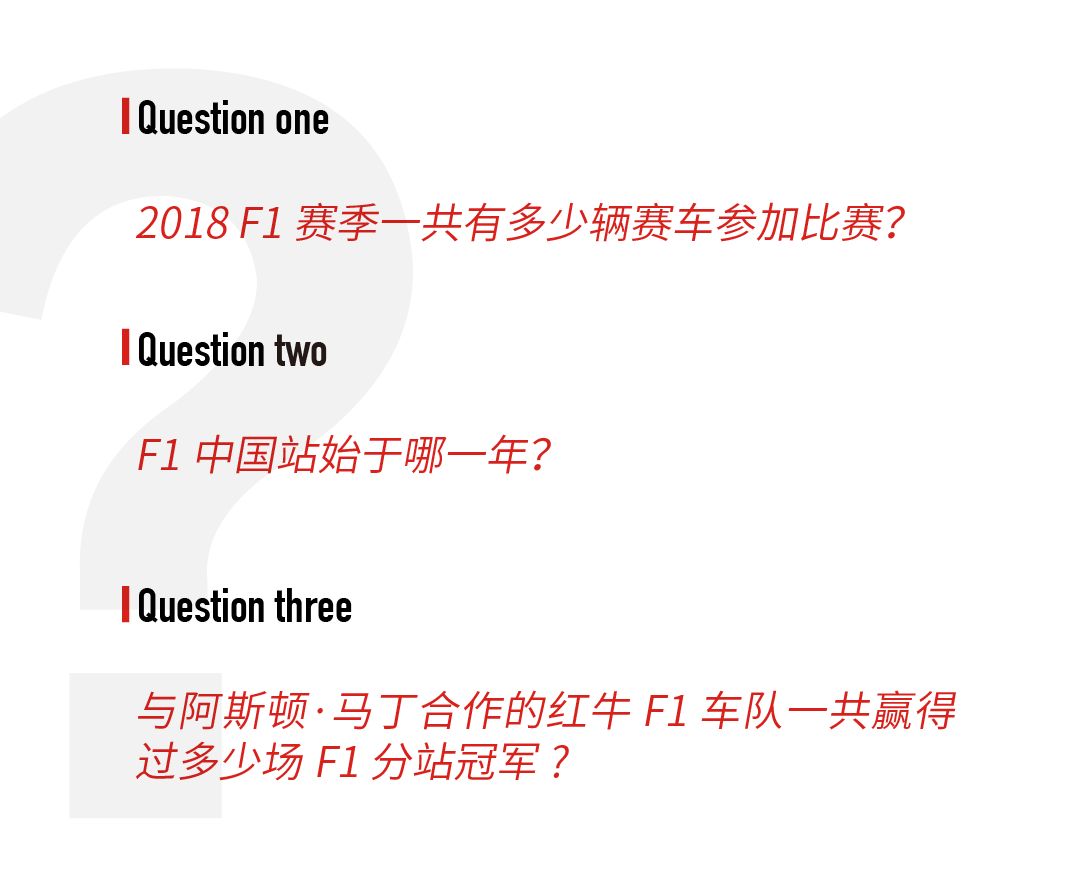 如果您3题都答对了——恭喜!您是F1资深车迷。
